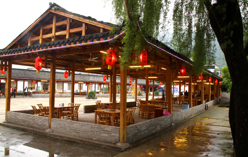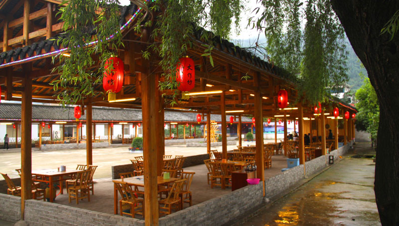 張家界武陵源大作坊美食城是一家集垂釣休閑,特色餐飲,夜市為一體的大型風味美食城!位于風景如畫的武陵源風景區(qū)區(qū)政府所在地,占地3000多平方米,可同時容納400多人就餐。這里也是景區(qū)內(nèi)匯集土家美食,苗家美食的第一坊!美食城按純木四合院建造,內(nèi)設酒作坊,豆腐作坊,臘味作坊,糍粑作坊,有垂釣區(qū),燒烤區(qū),菜品自助區(qū),客人廚藝展示區(qū),農(nóng)產(chǎn)品展銷區(qū)等。酒作坊內(nèi)聘請了民間煮酒大師現(xiàn)場煮酒,你有機會可以現(xiàn)場吃到熱乎乎的頭鍋酒,酒坊內(nèi)有純米酒,包谷燒,高梁酒,有用野果泡制的各種果酒---燈籠酒,楊梅酒,彌猴桃酒等,更有特色的是把高梁酒放在正在生長的楠竹內(nèi),用竹內(nèi)竹膜的香味把酒增香,十二天就把竹子砍下再放養(yǎng)三天就好了,客人要吃現(xiàn)場鋸竹筒酒吃!豆腐坊也是聘請民間老農(nóng)現(xiàn)場用自制的石磨做豆腐,在這里你可以吃到真正有豆香味的原汁原味的石磨豆腐,和渣,菜豆腐,豆腐腦等豆制品!臘味作坊里有冬天用各種香料熏制的正宗湘西藏臘肉,臘豬頭肉,臘香腸,臘豬腳,各種臘制品臘野味等。糍粑坊每天在晚上人多用餐高峰時現(xiàn)場打滋粑,客人也可以自己參與打糍粑這個快樂的過程,想受過年時才有的熱鬧情景!在垂釣區(qū)里我們放養(yǎng)有很多野生魚類,有時間了你可以來這里休閑垂釣,得到的魚我們就會給你現(xiàn)場加工,有清沌的,紅燒的,青椒燜的,酸湯的,都很好吃哦。燒烤區(qū)里,我們高薪聘請了燒烤大師為你現(xiàn)場制做,你也可以自己動手,有烤羊排羊腿,各種串烤,烤全魚,烤全兔等,還有各種鐵板烤可以自己炒著吃!菜品自己選區(qū)里有各種山野菜,壇子菜,干菜,臘味等,有各種鮮活的魚類,河蛘,水魚,田螺,龍蝦等,有各種農(nóng)家的土雞土鴨等,有各種鮮活的野味等你來享受美味呢!客人廚藝展示區(qū)里老板特設制地幾口大鍋, 很有特色的是, 你可以自己親自下廚, 酸甜苦辣任您自由調(diào)配 。 煮好了, 大家就圍著這“灶臺”合一的飯桌享受張家界的美食了。(張家界的三下鍋是很有特色的,是邊煮邊吃的, 只是這“三下鍋”是“大型三下鍋”而已。到張家界旅游,吃張家界的“三下鍋”是一種獨有的旅游體驗,到大作坊吃“大型三下鍋”,則更將會為你的旅程增添一份難得的回味。農(nóng)產(chǎn)品展銷區(qū)里展示著當?shù)鼗蛳嫖鞯貐^(qū)最暢銷的農(nóng)產(chǎn)品食品:正宗湘西鄉(xiāng)里臘肉,香腸,各種臘制品,洗車河霉豆腐,靈潔牌剁椒辣醬系列,菌油,正宗茶籽油,苗家酸湯,鄉(xiāng)里正宗葛粉,大壇湘西五糧液,竹簡敲敲酒,張家界茅巖霉茶,野生蜂蜜,高山葛粉,張家界第一山珍巖耳,葛根片等等! 武陵源大作坊美食城是武陵源景區(qū)規(guī)模最大,品種最多,環(huán)境最優(yōu)雅的休閑美食城。有各式小炒火鍋,岳陽特色燒烤系列,鐵板燒系列,鴨霸王系列,潮州特色砂鍋粥系列,涼菜醬菜系列,湘西地方特色小吃系列等。美食城整晚邀請著名的流浪歌手阿彪為你獻歌助興,并可同阿彪歌聲互動,在這里你可以放下一天的疲勞,拋開一身鎖事,度過美好的每一分鐘......武陵源夜市大作坊,是張家界旅游體驗的重要一站,它受到如此多的游客的熱捧,是因為,在這里能釋懷,是因為在這里,能體驗張家界旅游的文化內(nèi)涵, 是因為在這里,能給你一個自由的空間......
