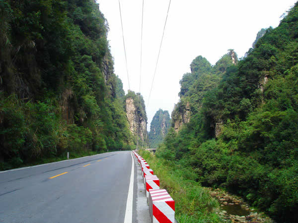 百丈峽圖片 百丈峽是武陵源風(fēng)景名勝區(qū)通往張家界市的公路貫通整個(gè)峽谷,因有堵高近百丈的石壁,直插云霄,不敢仰視,故而得名。據(jù)《慈利縣志》載,索溪峪右得百丈峽,峽長(zhǎng)三十公里……又相傳向王天子起義軍與官兵在此先后博殺一百仗,依此又名百仗峽。明代九永兵備胡桂芳,一生好游歷山川,來(lái)到百丈峽后題寫(xiě)了一首七言詩(shī):“峽高百丈洞云深,要識(shí)桃源此處尋;戎旅徐行風(fēng)雪緊,誰(shuí)將興盡類(lèi)山蔭!笨逃趰{內(nèi)道旁石壁上。