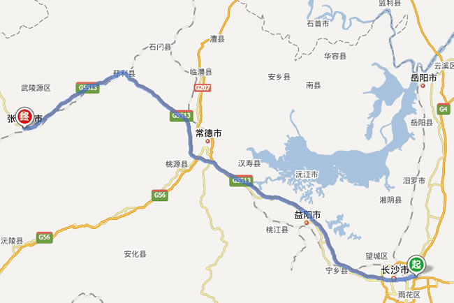 長(zhǎng)沙市到張家界自駕車(chē)路線圖