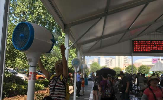 為更好的為游客防暑降溫,天門山景區(qū)特別在索道站、山門等候區(qū)增設大型遮陽棚,作為游客等候休息區(qū),并在等候區(qū)內(nèi)安裝數(shù)十個室外冷霧降溫風機和直飲水點。